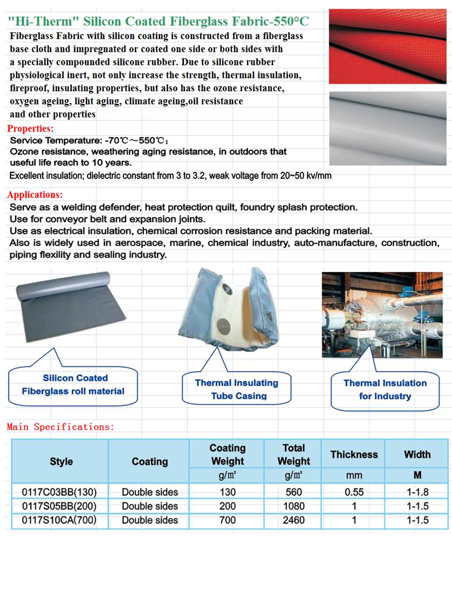 Silicon Coated Fiberglass Fabric-550℃